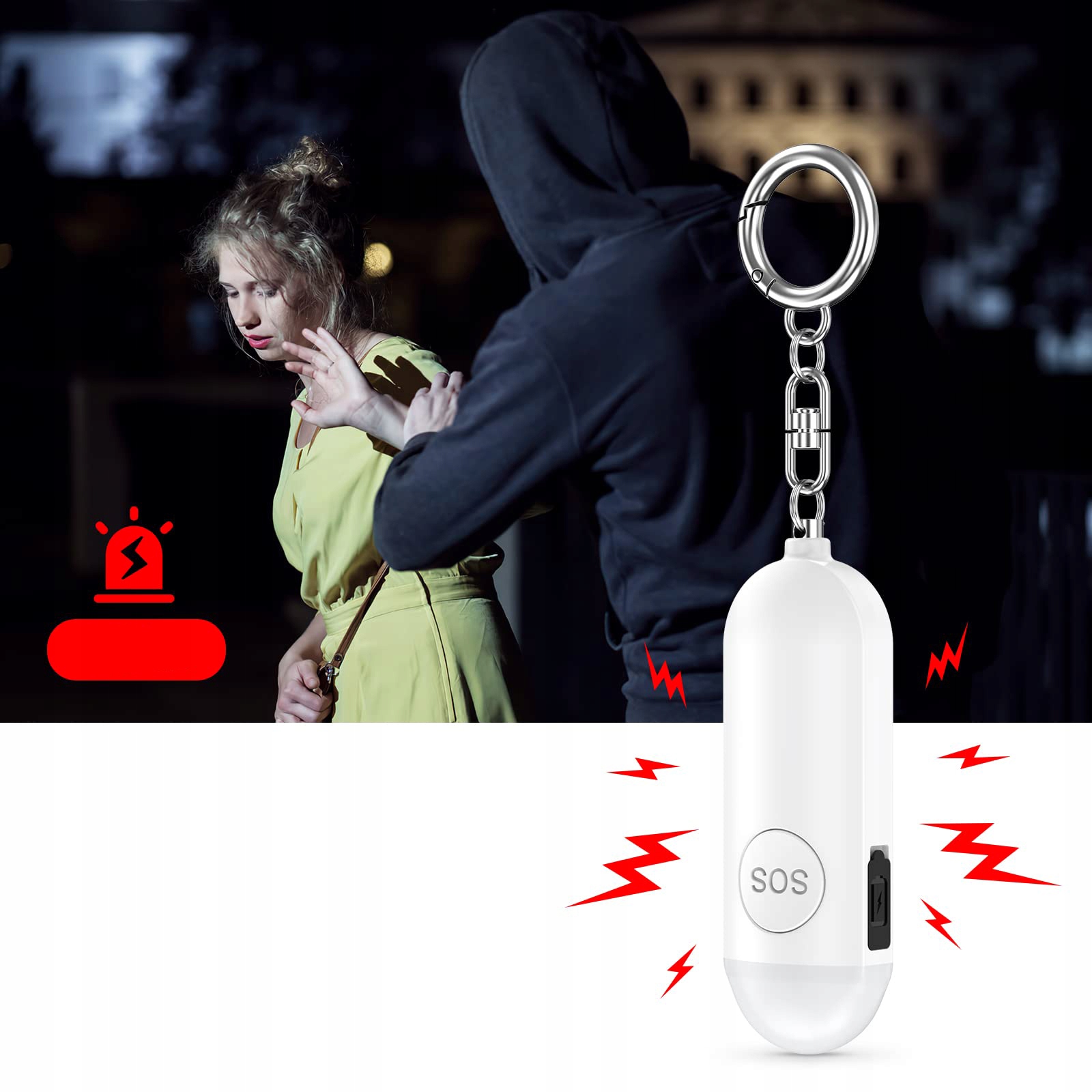 [Сигналізація для самооборони] Ця кишенькова сигналізація захистить вас! Якщо ви відчуваєте загрозу, гучний, пронизливий сигнал тривоги 130 дБ ефективно відлякає нападників або тварин і приверне увагу перехожих.