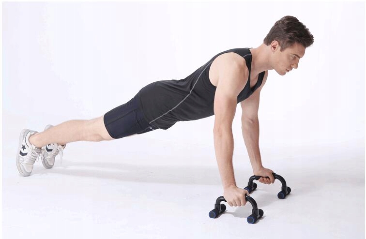 Рукоятки мають профільовану форму, тому забезпечують стійку опору та рівномірно розподіляють вагу під час виконання вправ у вибраному положенні тіла. Ручки для віджимань мінімізують тиск на кисті, зап’ястки та лікті під час виконання віджимань у вузькій/широкій стійкі та хрест-навхрест.