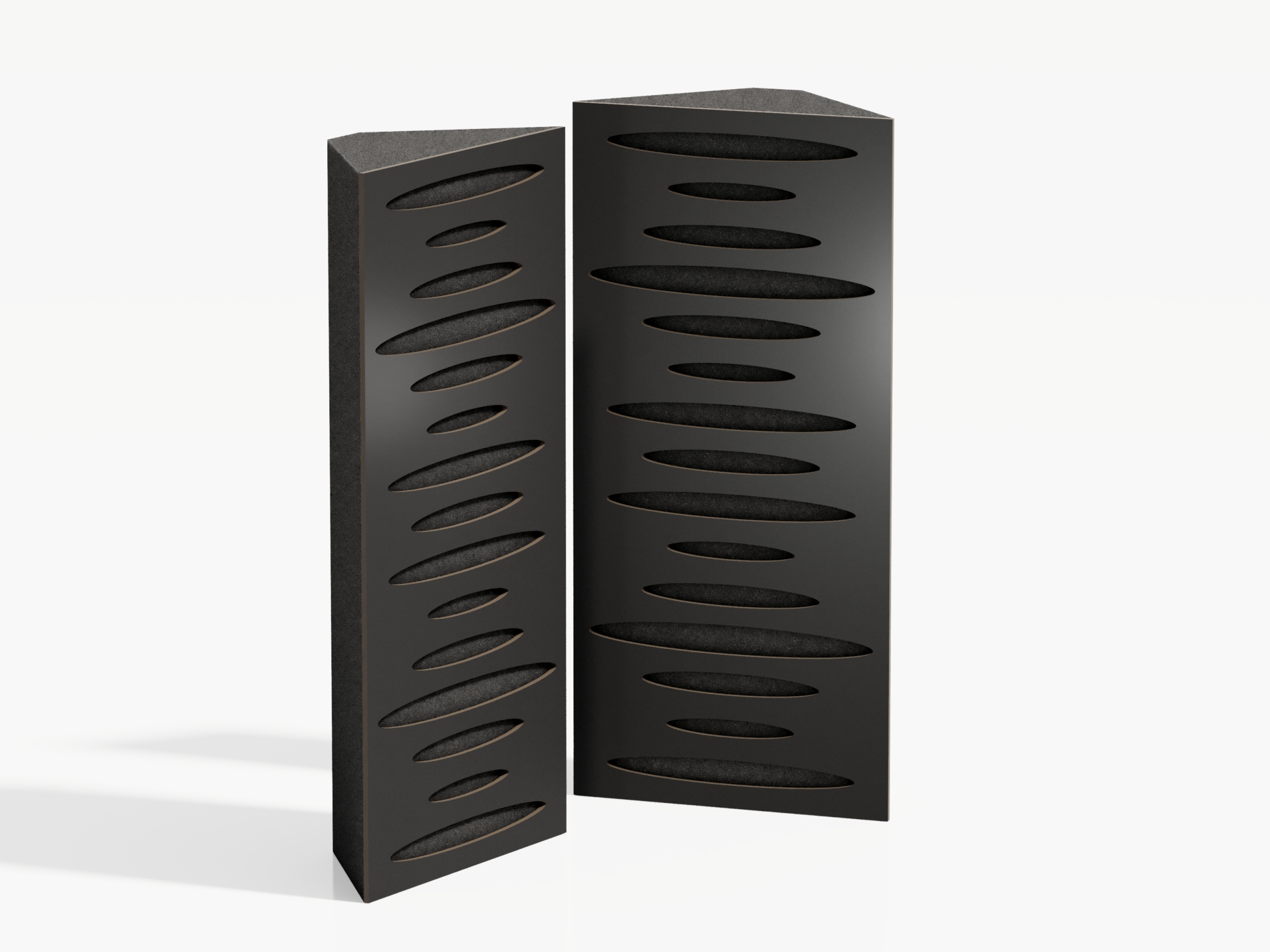 Вузькі кутові акустичні панелі Narrow Trap (бас-трапи) поєднують функцію поглинання низьких частот і відбиття звуку за допомогою акустичної піни та дисперсійної пластини. Ці пристрої ідеально підходять практично для будь-якого приміщення, де є проблеми з низькочастотною реверберацією і стоячими хвилями. Товста акустична основа з акустичної піни товщиною 100 мм забезпечує необхідну продуктивність на низьких частотах. Ідеально підходить для розміщення в кутку під стелею, а також у кутах стін, якщо не вистачає місця для стандартної басової пастки.