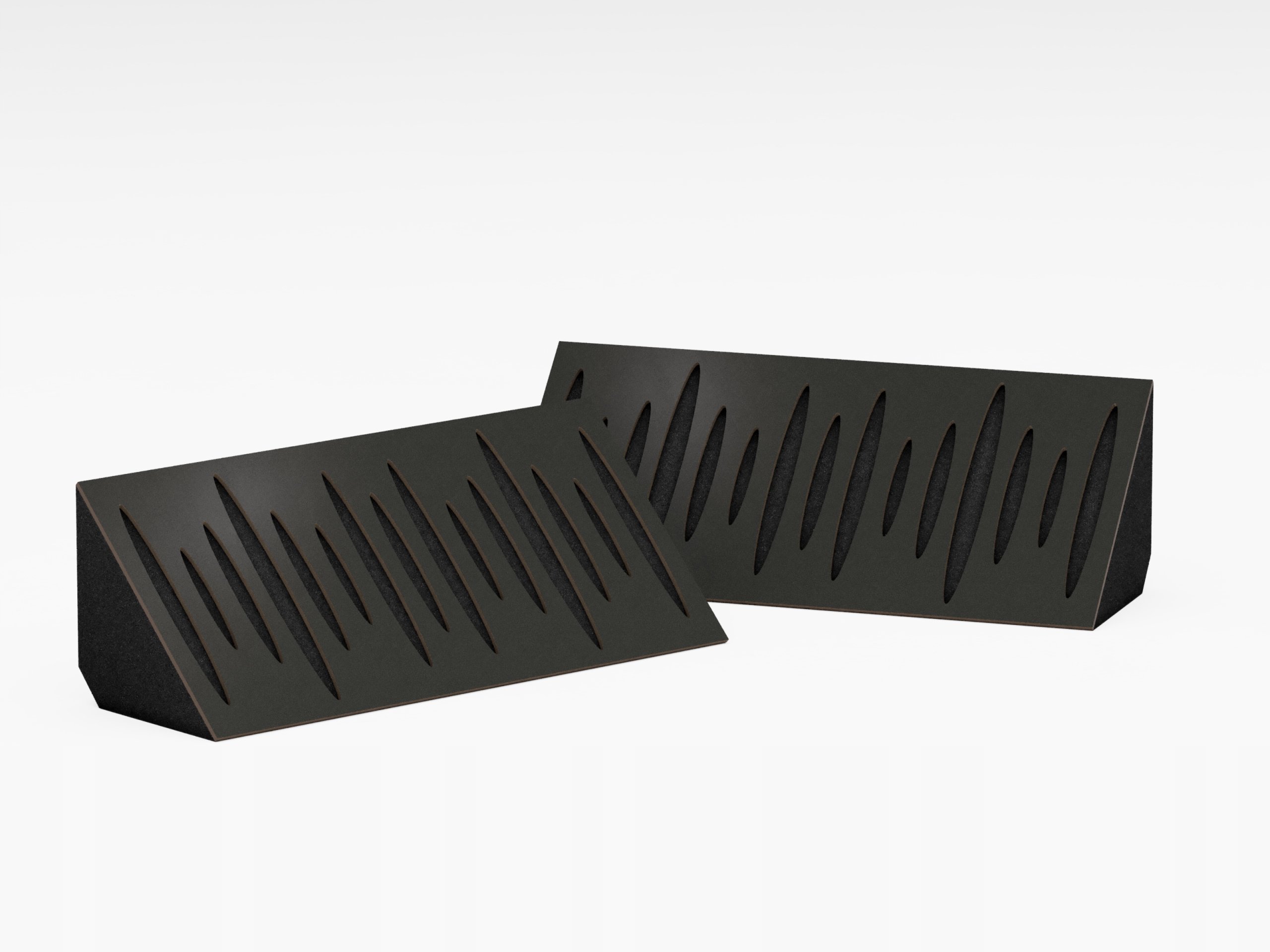 Вузькі кутові акустичні панелі Narrow Trap (бас-трапи) поєднують функцію поглинання низьких частот і відбиття звуку за допомогою акустичної піни та дисперсійної пластини. Ці пристрої ідеально підходять практично для будь-якого приміщення, де є проблеми з низькочастотною реверберацією і стоячими хвилями. Товста акустична основа з акустичної піни товщиною 100 мм забезпечує необхідну продуктивність на низьких частотах. Ідеально підходить для розміщення в кутку під стелею, а також у кутах стін, якщо не вистачає місця для стандартної басової пастки.
