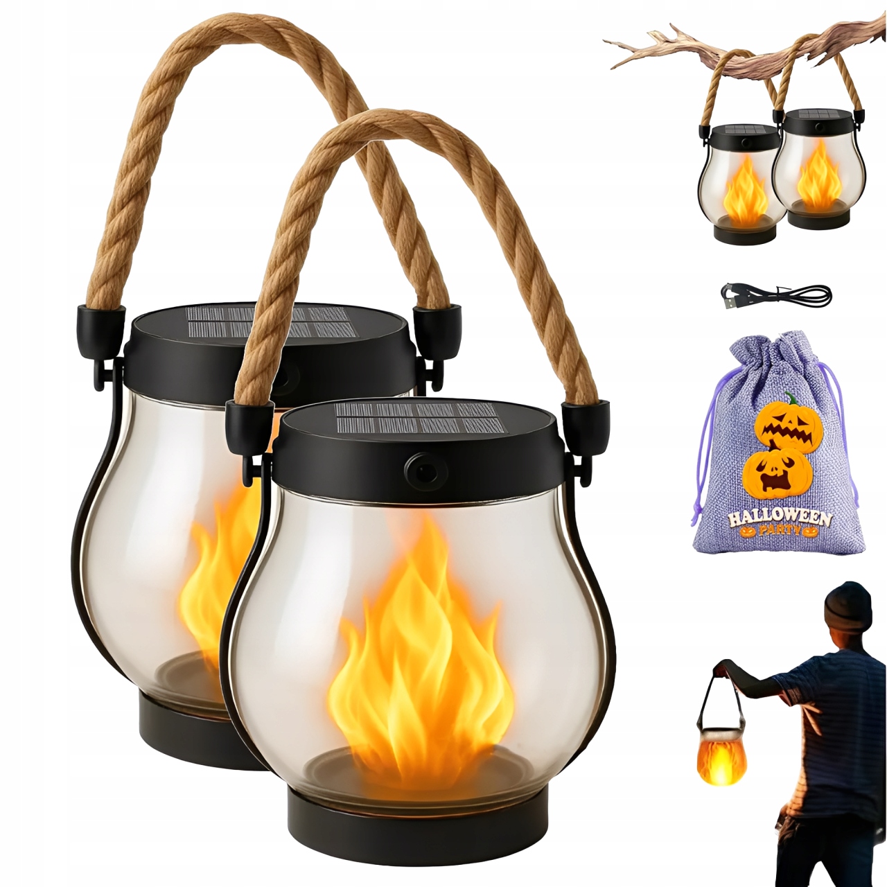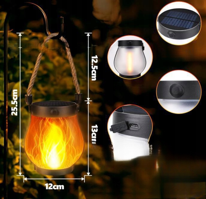Основні особливості: Імітація полум'я, подвійна сонячна зарядка/USB