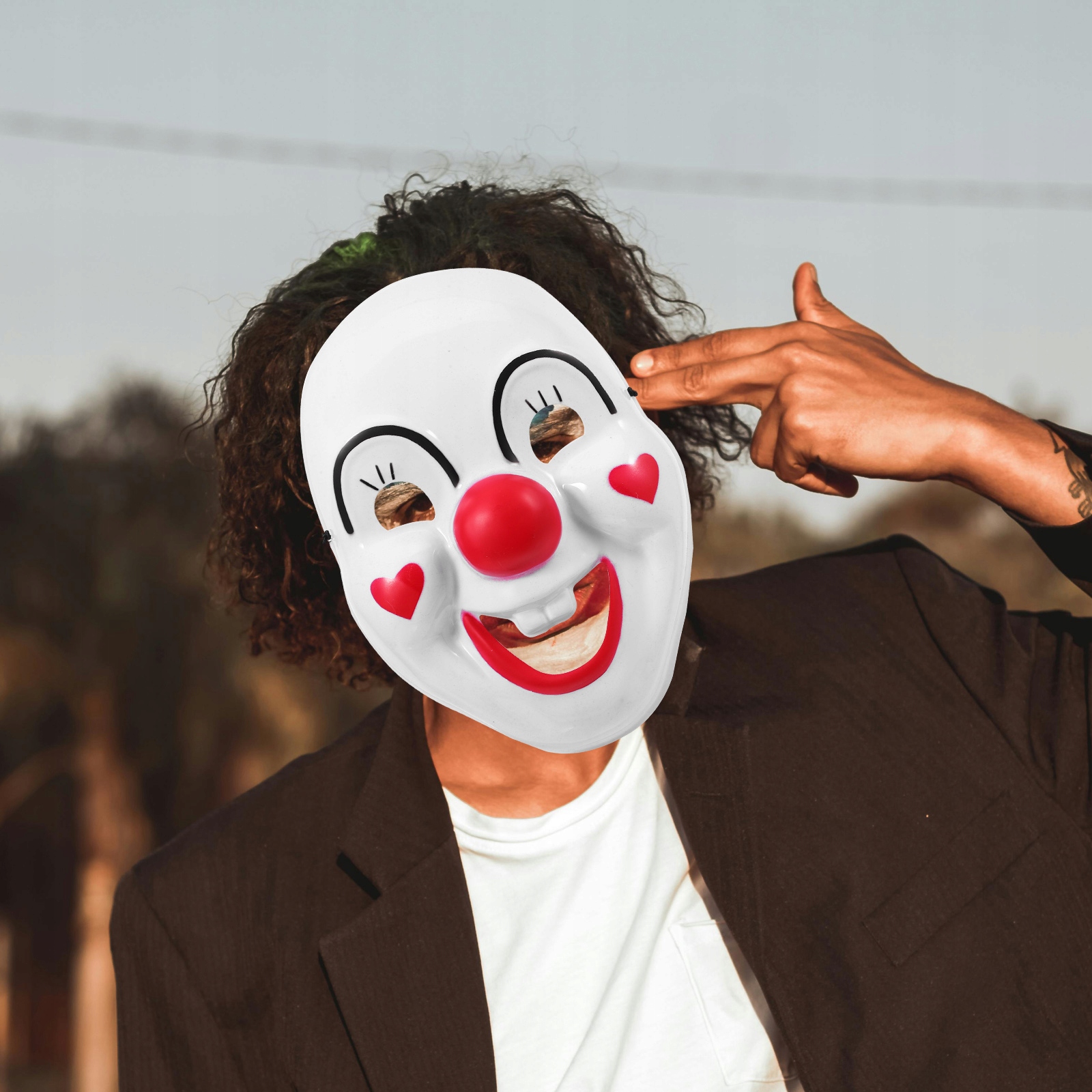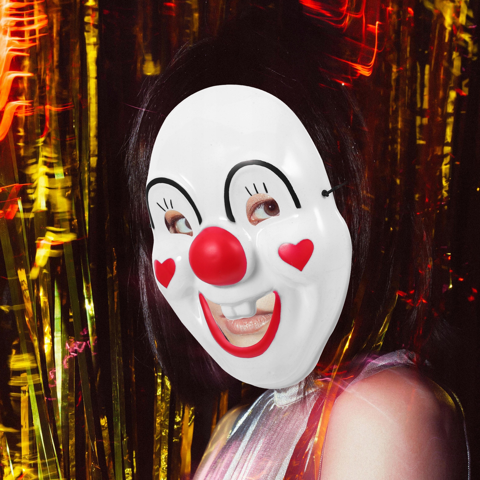 Маска клоуна на карнавал обов’язкова- мати для кожної події. Незалежно від того, чи це вечірка на Хелловін, день народження чи костюмована вечірка, ця маска триматиме вас у центрі уваги. Дизайн усміхненого обличчя, який приносить радість усім навколо. Виготовлена із захисної маски, вона міцна, довговічна та придатна для використання.