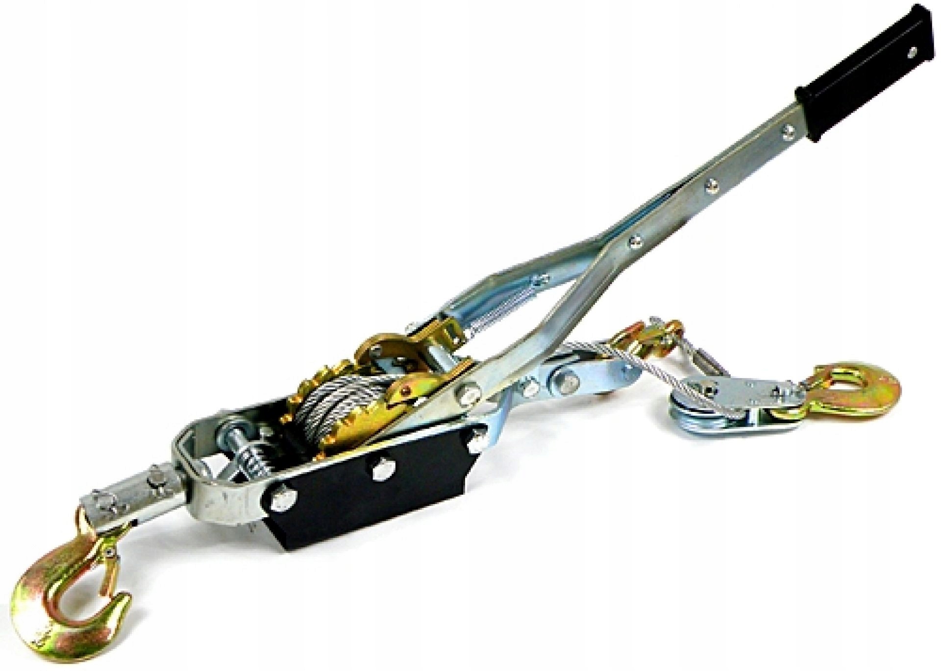 Канатна лебідка оснащена подвійним храповим механізмом, пристроєм, виготовленим з високоякісних, міцних матеріалів відповідної міцності (конструкційна сталь і литі гаки з поворотними пружинами), що робить її міцною конструкцією, що забезпечує тривалий термін експлуатації та безпечність операція.