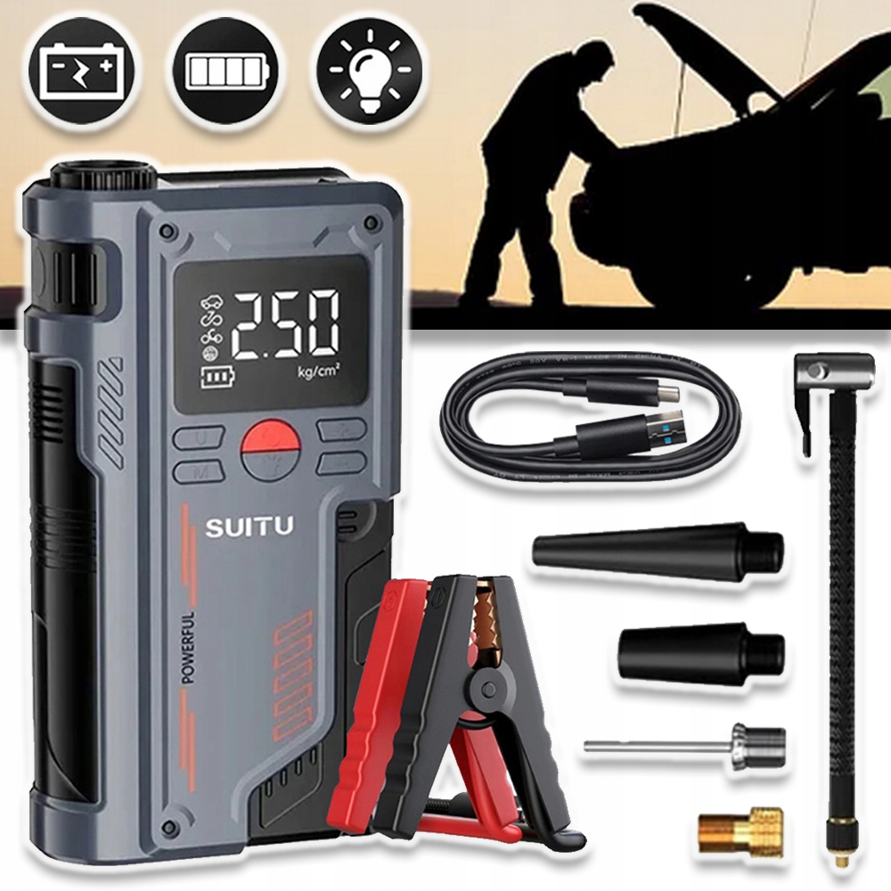 2В1 JUMP СТАРТЕР ЗАПУСК БУСТЕР ПАВЕРБАНК З НАСОСОМ 150PSI ДЛЯ АВТОМОБІЛЯ