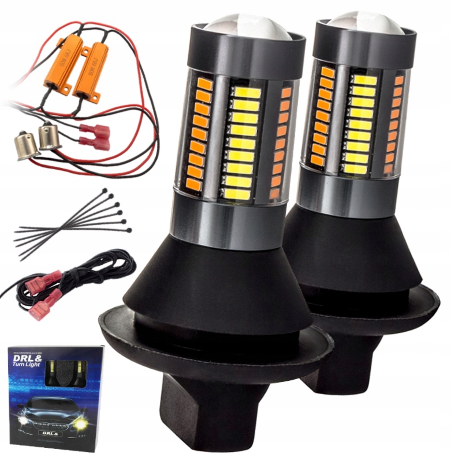 ⚙️2X LED 66 SMD4014 (біле світло 6500k та оранжеве світло в одній лампочці)⚙️
