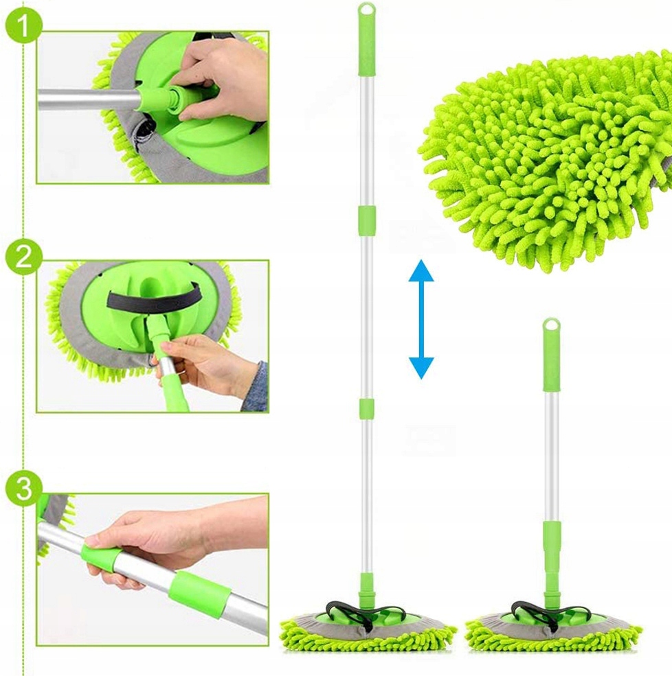 Довжина телескопічної швабри з регулюванням на 180 градусів становить 54-110 см / 21-43 дюйма, що забезпечує легке миття автомобіля, включаючи дах, капот і лобове скло.