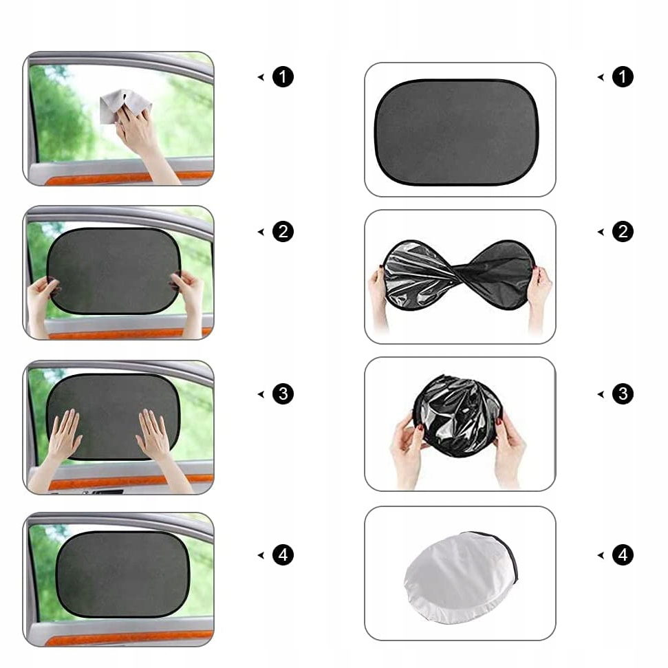 🌞Самоклеюча сонцезахисна шторка. Автомобільна сонцезахисна шторка є самоклеючою та легко прикріплюється до вікна. Завдяки електростатичному заряду поверхня є самоклеючою і може бути прикріплена до бічного вікна повністю без присосок. Тонка інноваційна сонцезахисна плівка не залишає слідів після зняття зі скла.