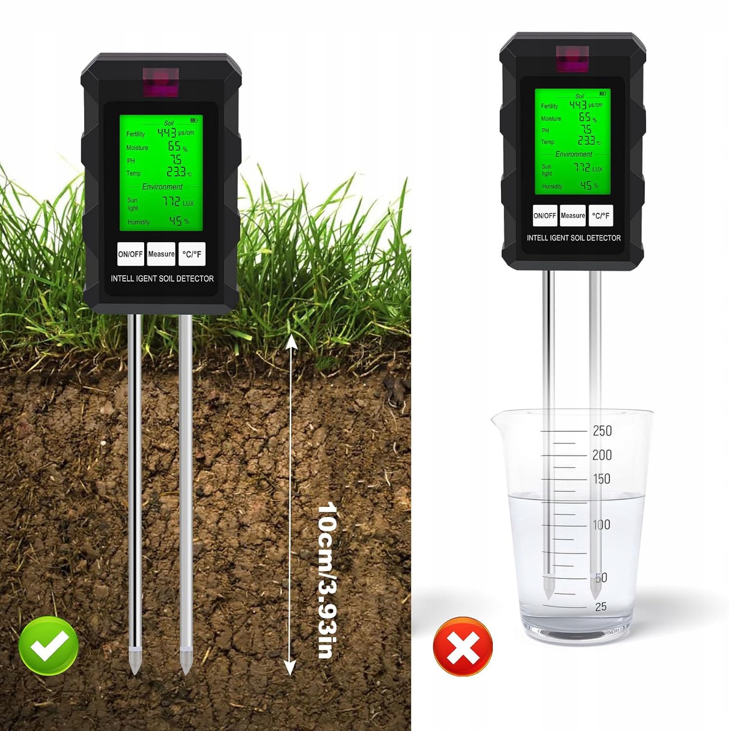 🌱🌱 Багатофункціональний тестер ґрунту 6 в 1: Цей інструмент допомагає контролювати шість факторів, що стосуються рослин: вологість, рН, температура, родючість, інтенсивність світла та вологість. Забезпечує точні дані в реальному часі, ідеально підходить для садівників та фермерів. Цей продукт призначений для глини та ґрунту, але не для порошків, каменів, органічних матеріалів або рідин. Не підходить для сукулентів / орхідеї.