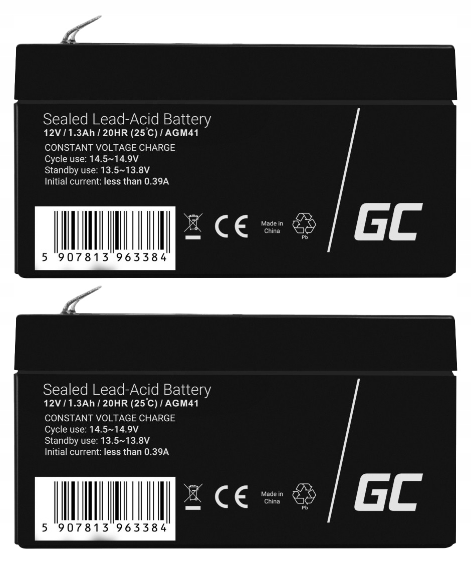 2x акумулятор 12В 1.3Ah Зелена комірка VRLA -бездоганні Wagi фонду UPYS
