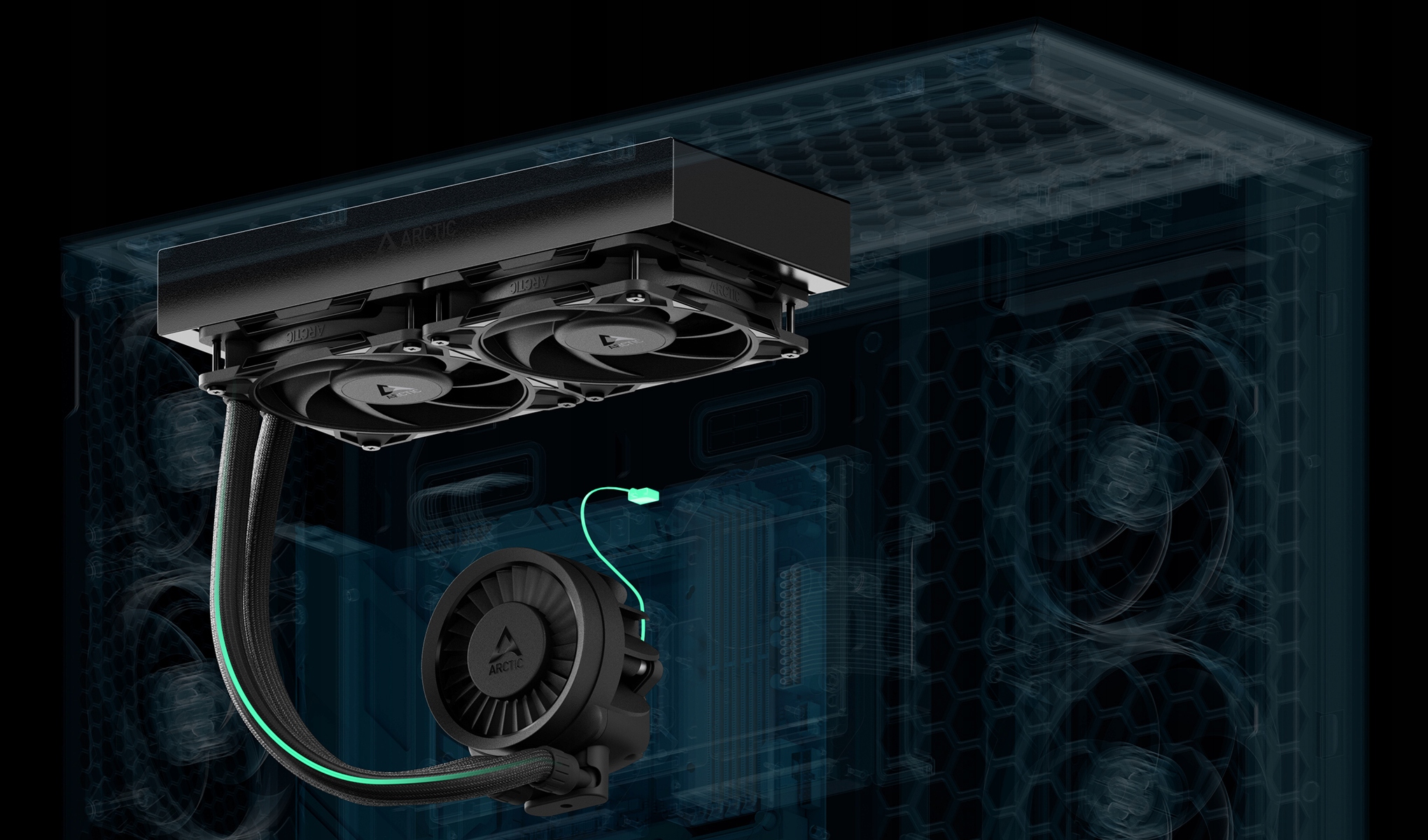 Завдяки розподільчику, що входить до комплекту, насосом, вентилятором VRM і вентиляторами радіатора можна керувати окремо, дозволяючи вам точно адаптувати охолодження до потреб вашої системи. Крім того, усі компоненти можна синхронізувати за допомогою одного ШІМ-сигналу, який передається по одному кабелю «все в одному», що спрощує установку та керування охолодженням.