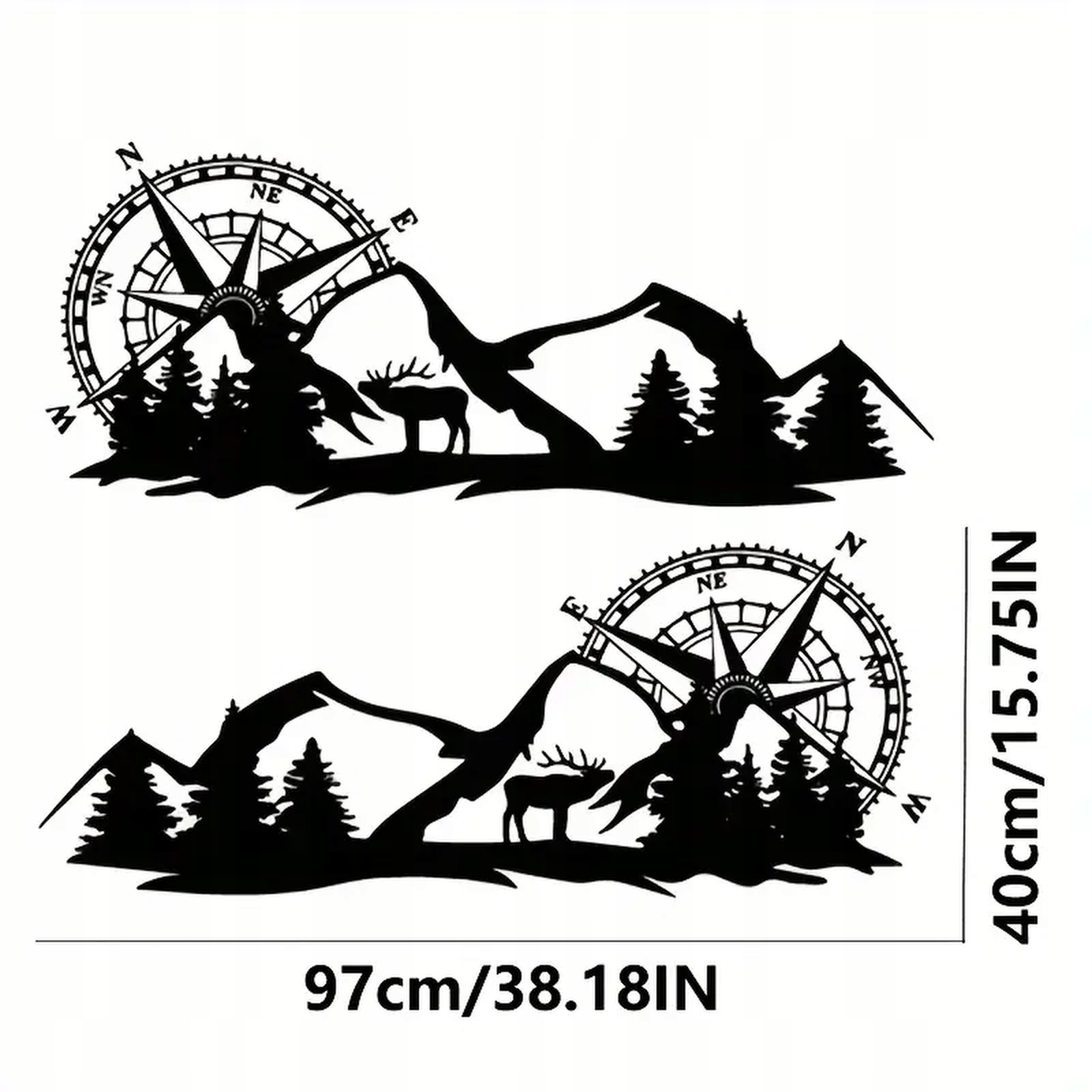 2x Автомобільна наклейка, будинок, автобус, вітрова троянда з лісом, лось 97x40