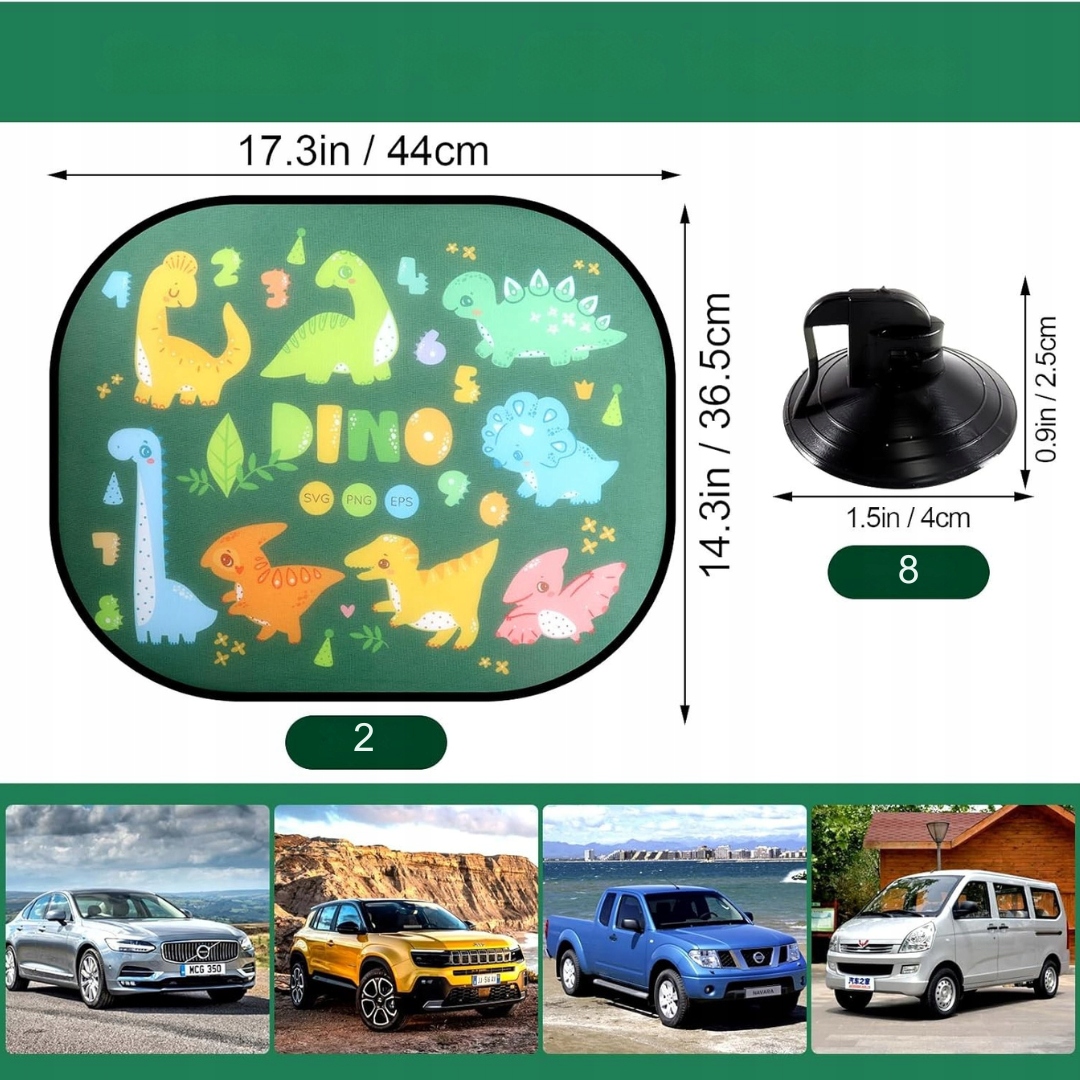 Тонка для автомобіля для дітей, 44 х 35 см, універсальна сонцезахисна навіс для автомобіля з УФ-захистом, мотив динозавра, з 8 присосками - для немовлят, дітей, дівчаток і хлопчиків