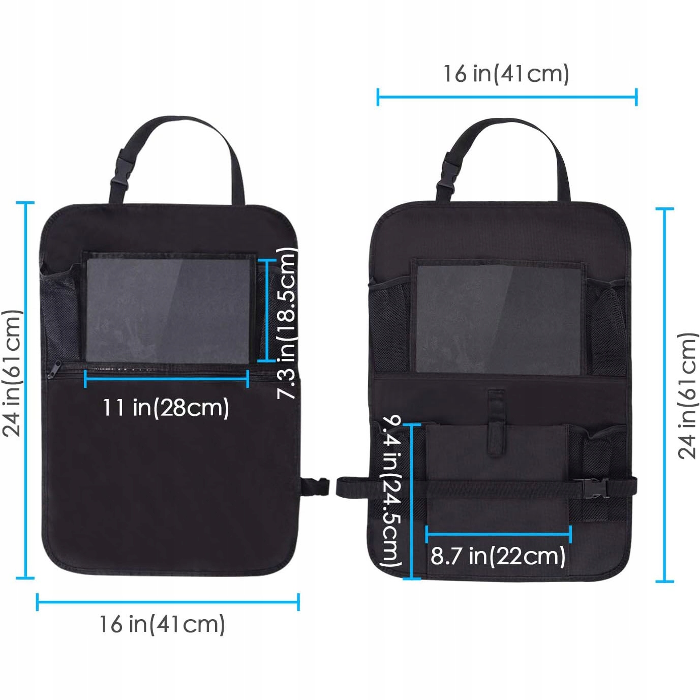 2 предмети, разом із тримачем для планшета, п’ять додаткових кишень-органайзерів на задньому сидінні вашого автомобіля забезпечують більше місця для зберігання напоїв і пляшок, дитячих іграшок і книг, журналів, серветок і закусок.