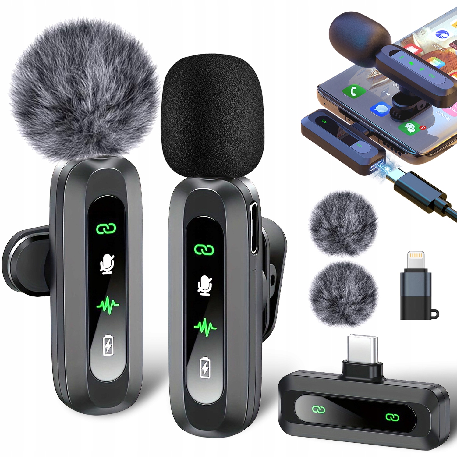 2x бездротовий мікрофон для краватки для iPhone Computer Tikktok YouTube Vlog USB-C + Adapter iPhone