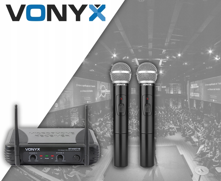 2x Mikrofon bezprzewodowy VHF+ Baza Zestaw Vonyx