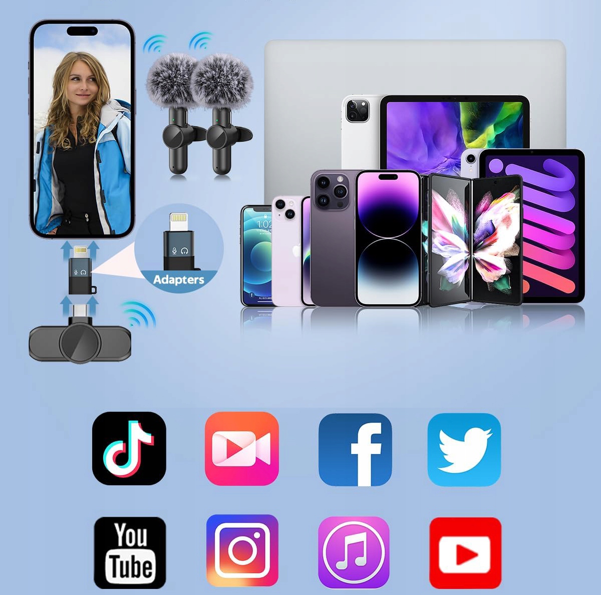 Our wireless tie microphones are available with type C receivers, type C for lightning adapters and CO type C adapters for different devices (one for iPhone, one for Android C phones and one for laptops). Мікрофон Tie бездротово працює з iPhone 6 та новішими, iPad 2/3/4, серіями iPad Air, ноутбуками та телефонами Android. (якщо ваш мікрофон не сумісний з вашим телефоном, оновіть систему до останньої версії).