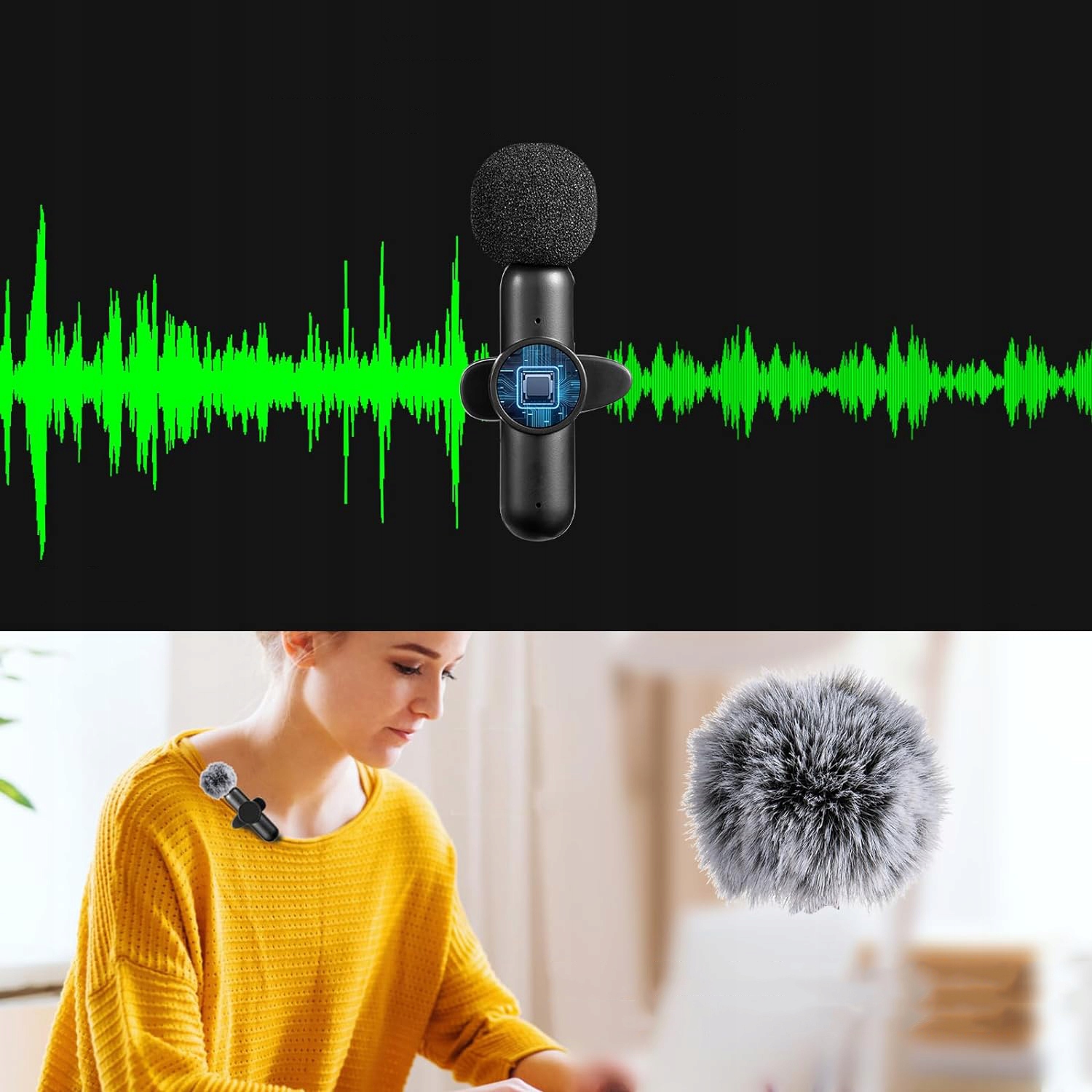 мініатюрний мікрофон краватки, вдосконалений за допомогою системи зменшення шуму, мікрофона з кульовим малюнком та зменшенням шуму, з дуже чутливою головкою мікрофона та 360 ° запису для чистих записів навіть у галасливому середовищі. Бездротовий мікрофон також оснащений губкою, що захищає від вітру, щоб зменшити шум вітру та систему протибійної системи для зменшення перешкод у навколишньому середовищі.