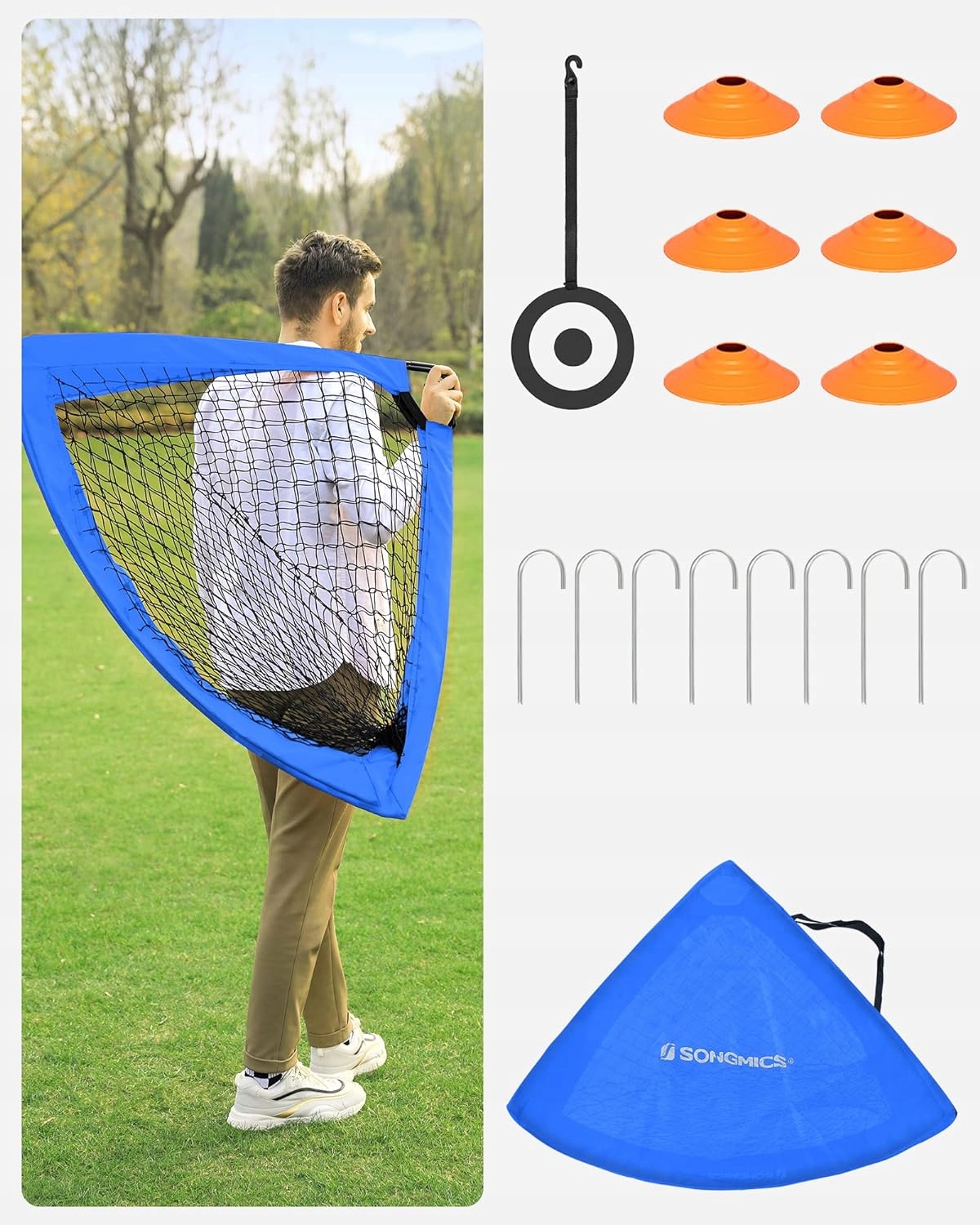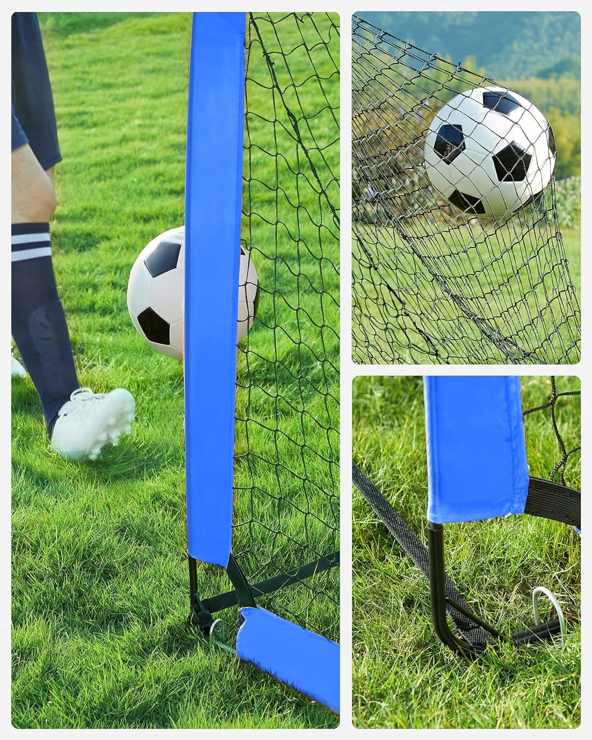 Футбольні ворота складаються зі скловолоконних стрижнів, Тканина Оксфорд і поліестерова сітка - просто дістаньте його з сумки, розгорніть і з'єднайте деталі. Це дасть вашим дітям більше часу для гри у футбол.