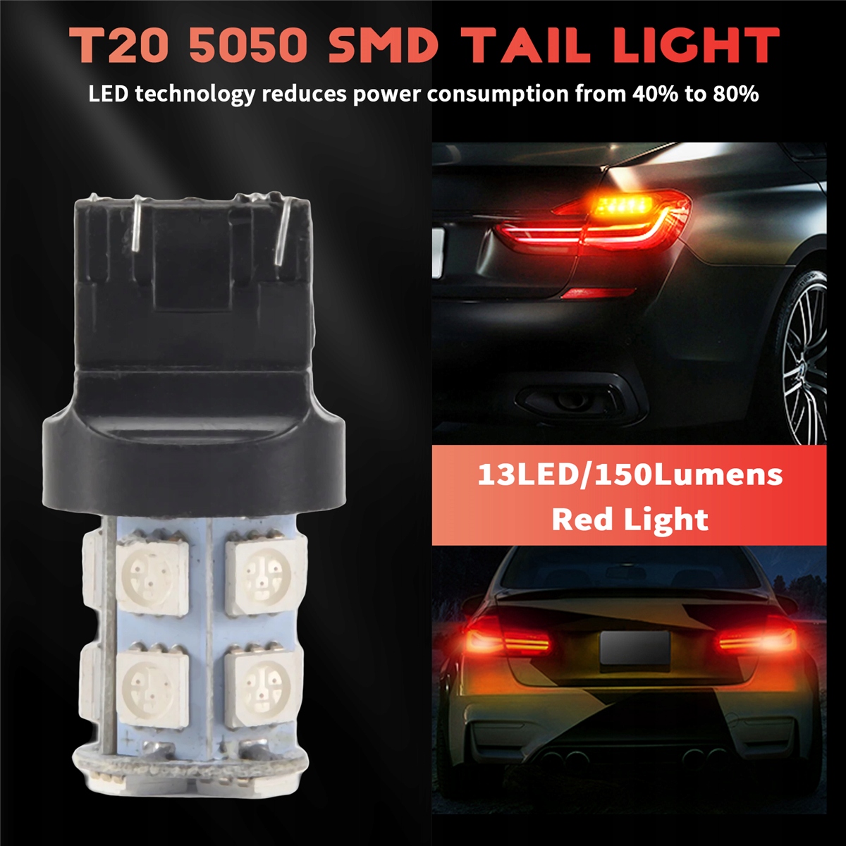 2x Червоний T20 7443 380 W21/5W CAR 13 SMD 5050 Світлодіодні лампочки гальмівні світильники та індикатори напрямку