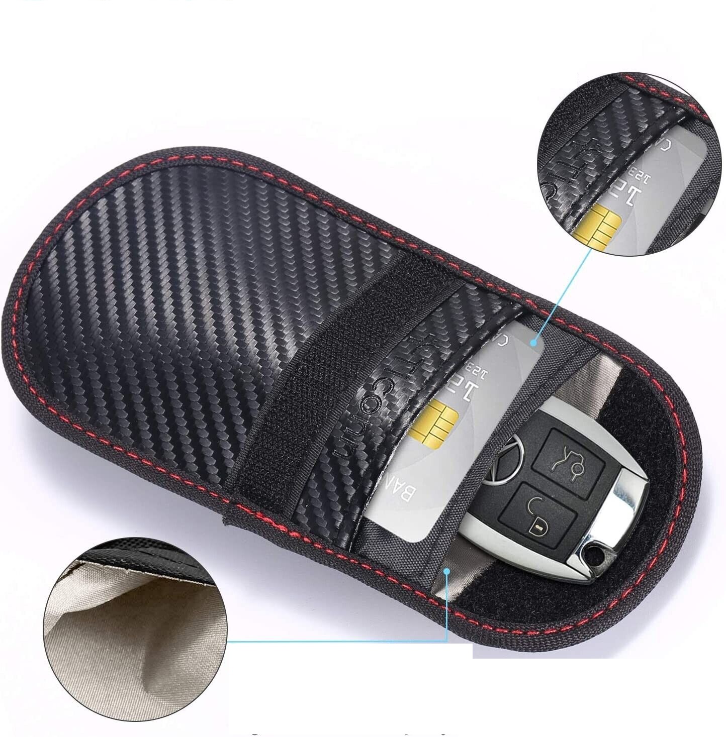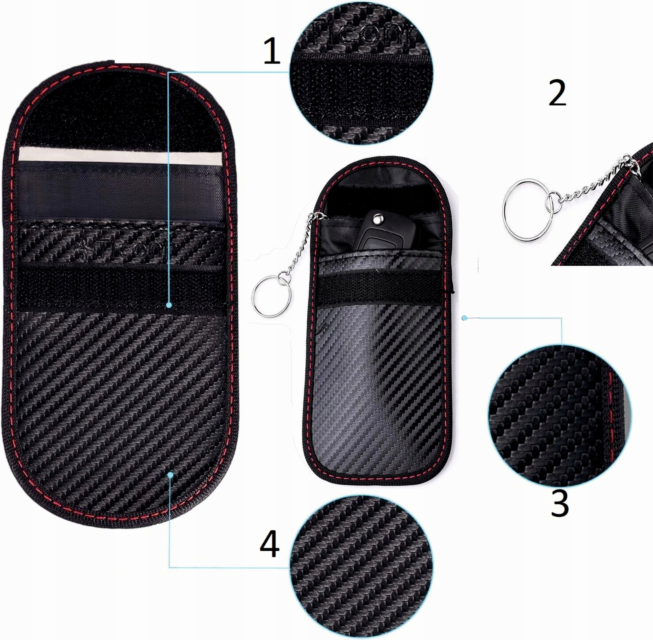 - Кишеня № 1 блокує сигнал ключа, що не дозволяє злодіям зчитувати сигнал - покладіть ключ від автомобіля в кишеню та щільно закрийте кришку< /li>