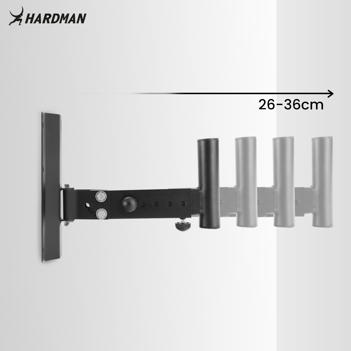 Діапазон регулювання від стіни або іншої конструкції кріплення: від 26 см до 36см, дозволяє гнучко адаптуватися до різних систем приміщень та конкретних потреб користувача. Завдяки цьому, штатива може бути встановлена оптималізованою способом внутрішньої акустики та забезпечення найкращого розподілу звуку.