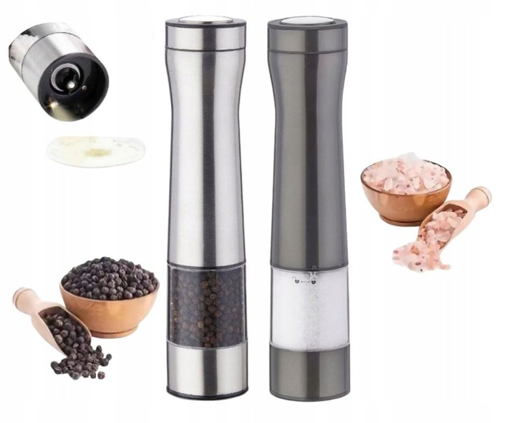 🔧2x електрична шліфувальна машина для солі та перцю - сталь, з регулюванням та лампою