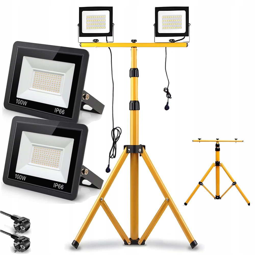 2x ГАЛОГЕННА СВІТЛОДІОДНА ЛАМПА ШТАТИВ 2x100W 4500K БУДІВЕЛЬНИЙ РОБОЧИЙ ПРОЖЕКТОР 200W
