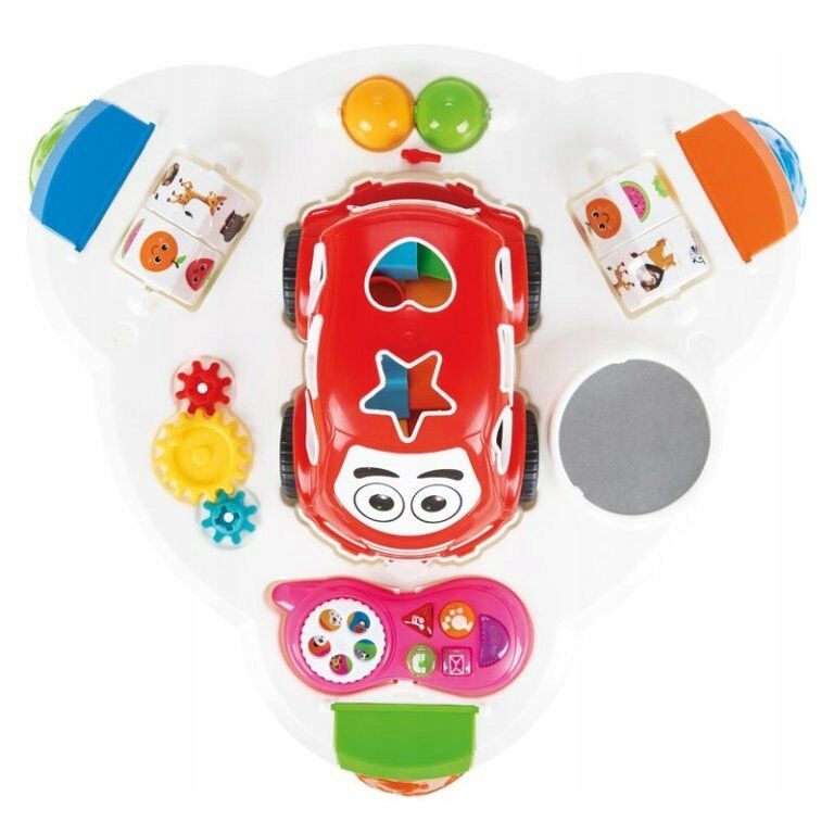 Фрагменти столика, що обертається, зокрема: шестерні, залучають малюка до гри та належним чином зміцнюють його мозок.