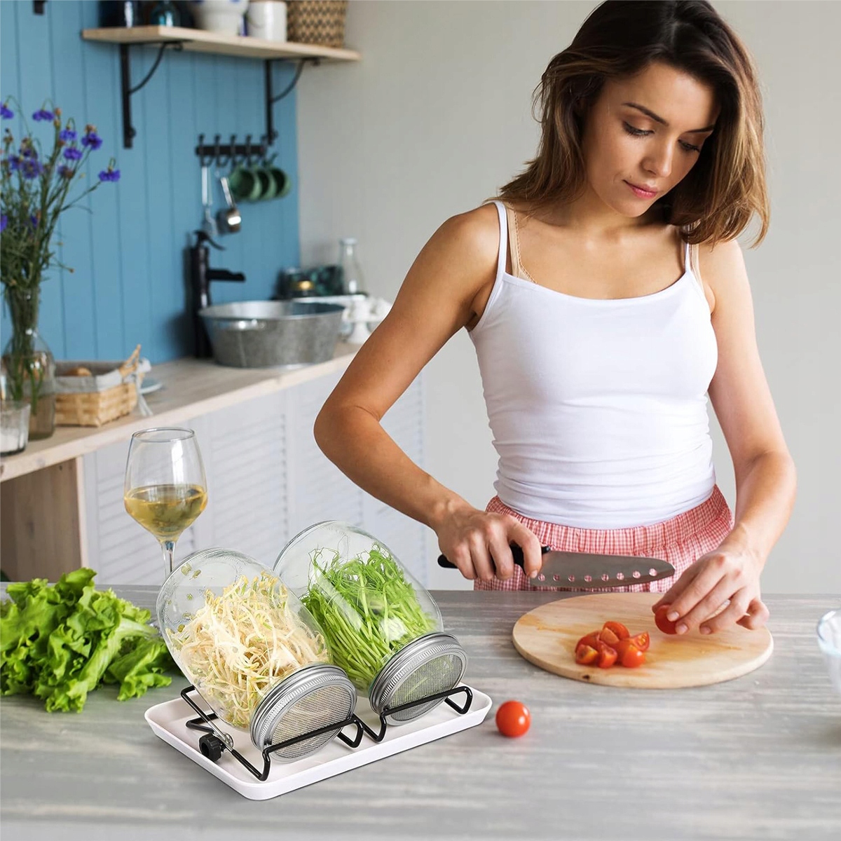 �phewywing: Завдяки цьому наборі проростання ви можете легко рости свіжими, здоровими та смачними проростаючими овочами на вашій кухні. Ви можете перетворити власну кухню на джерело вітамінів і мінералів і насолоджуватися здоровою дієтою. Ви не тільки можете надихнути свою родину та друзів на вирощування власних паростків, але й діти будуть користуються прихильністю, навчитися вирощувати паростки та розважатися під час цього процесу. Виготовлений із сталевого нержавіючого 304, який є міцним і стійким до корозії та іржі, а також велика ємність 1000 мл може бути використана для Зберігання інших предметів.