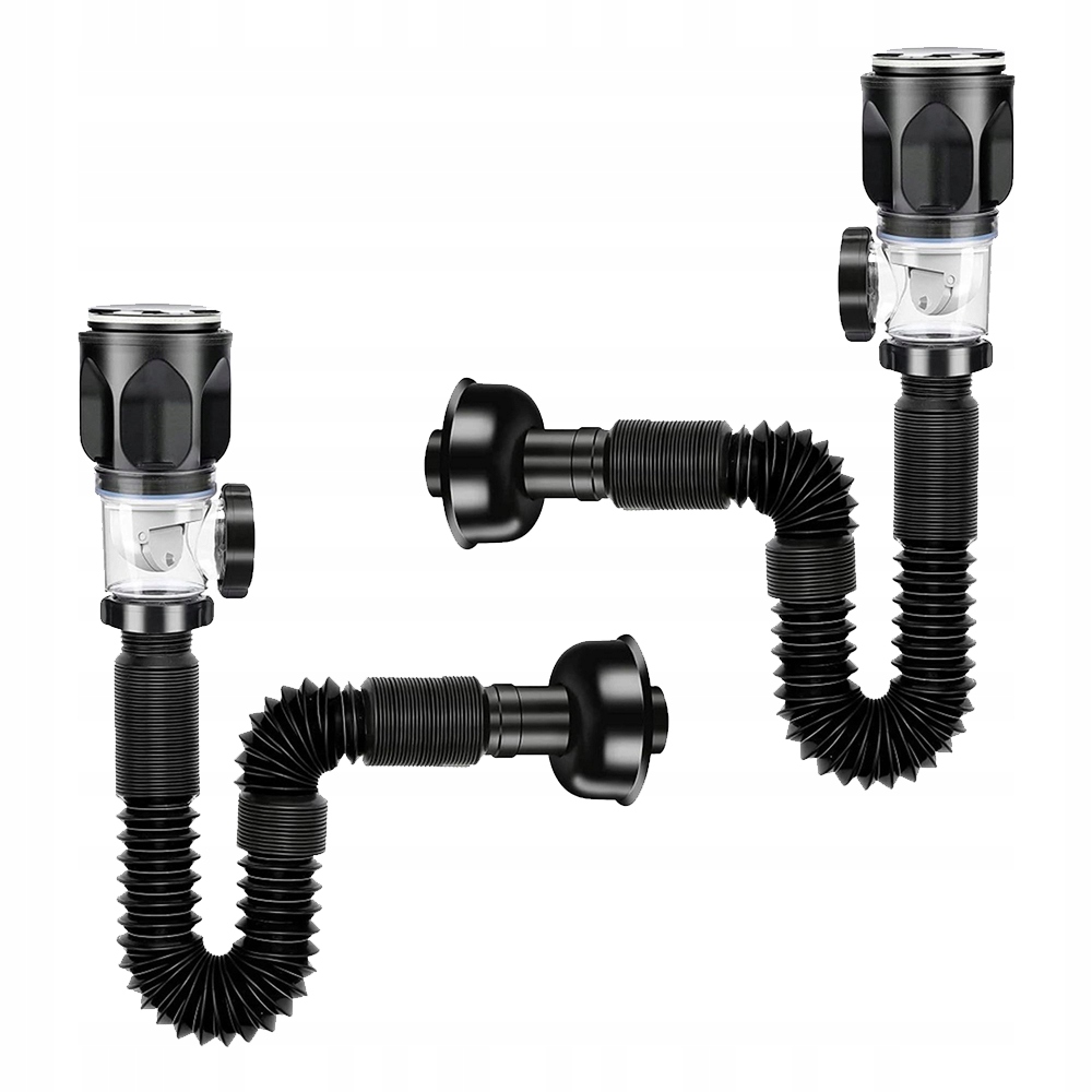 2X КОМПЛЕКТ СИФОНУ ДЛЯ УМИВАЛЬНИКА + ЗАТВОРКА КЛІК-КЛАК З ПЕРЕЛИВОМ, ЧОРНИЙ