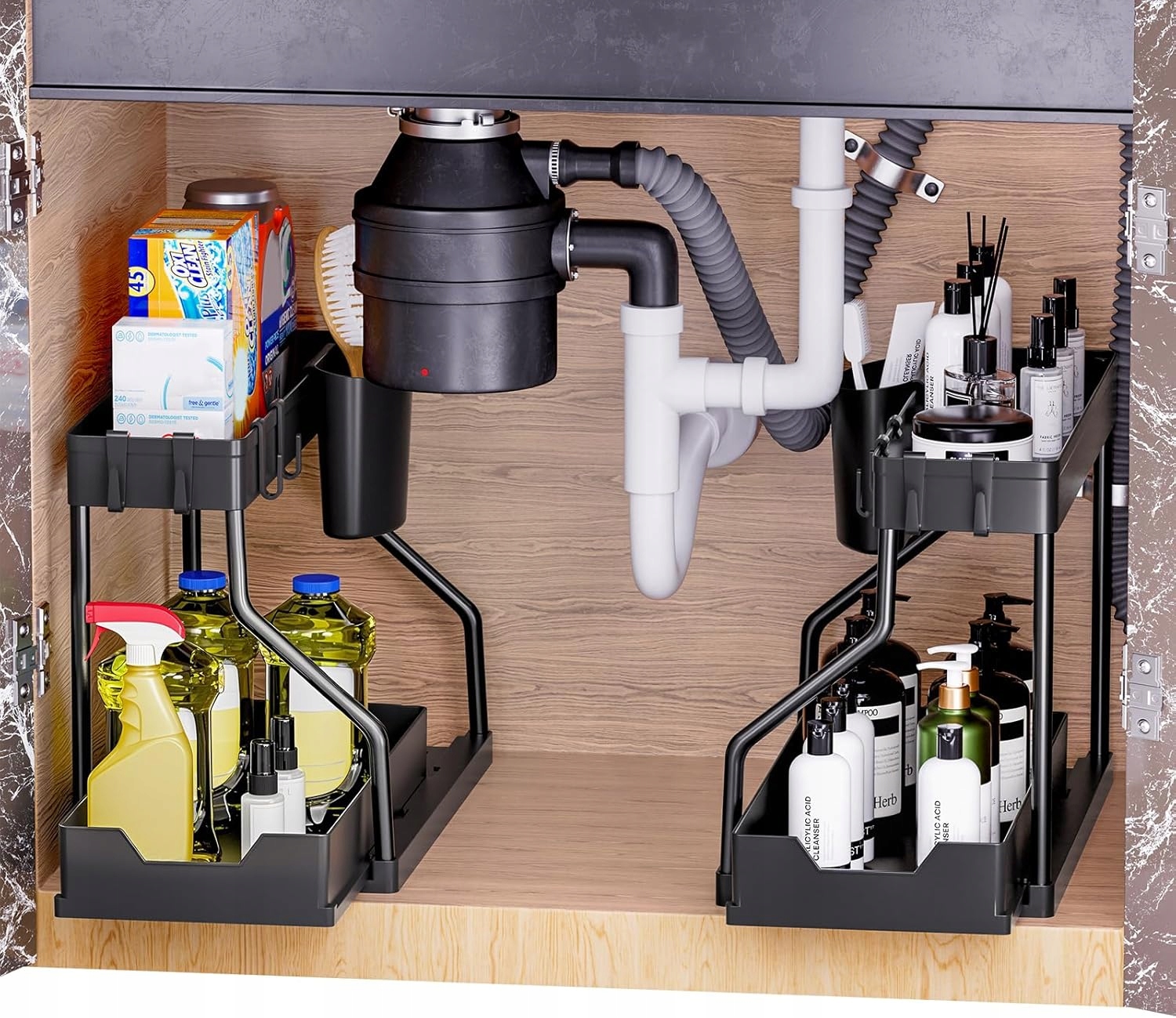 Puricon - 2 комплекти органайзерів під раковину, висувні органайзери під раковину, 2-ярусний, багатофункціональний органайзер для ванної кімнати, полиця під раковиною з висувним ящиком