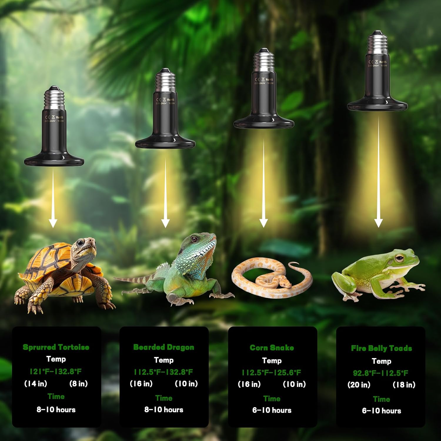 Також ідеально підходить для тих рептилій і земноводних, яким потрібно трохи додаткового тепла, щоб підтримувати здорову температуру вночі, наприклад, бородатих драконів, хамелеонів і багатьох деревних жаб.