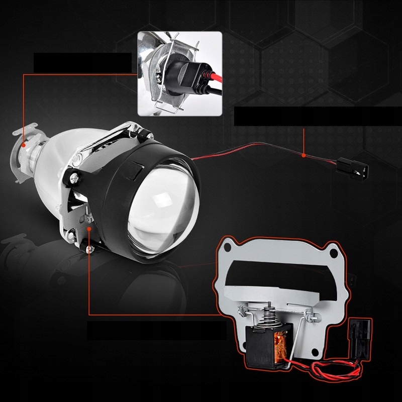 Набір лінз призначений для зміни традиційних світильників із відбивачем на лінзи Bixenon. Об'єктиви Biksenon мають побудований діафрагма, керовану електромагнітом, завдяки якій ми отримуємо світло, що проходить - короткий і дорога - довгий. Вони використовують загальнодоступні нитки H1. Встановлення лінз можливе у фабриці ламп, оснащених лампочкою H7 або H4. Сам процес складання дуже простий і повністю оборотний і не вимагає різання чи склеювання. Розміщуючи об'єктив в оригінальній розетці, підтримується серійний спосіб регулювання світильників, а сам об'єктив належним чином вирівнюється. Набір разом з лінзами включає.