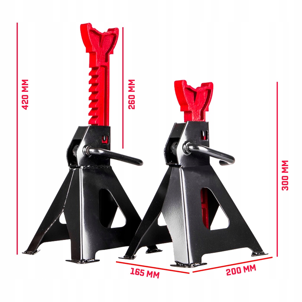 Наші опори для майстерень пропонують широкий діапазон регулювання висоти - від 280 мм до 400 мм. Завдяки цьому ви можете адаптувати їх до своїх індивідуальних потреб і потреб. Храповий механізм дозволяє дуже точно регулювати висоту на багатьох рівнях. Незалежно від того, чи працюєте ви над низьким легковим автомобілем чи високим позашляховиком, наші домкрати адаптуються до ваших потреб.