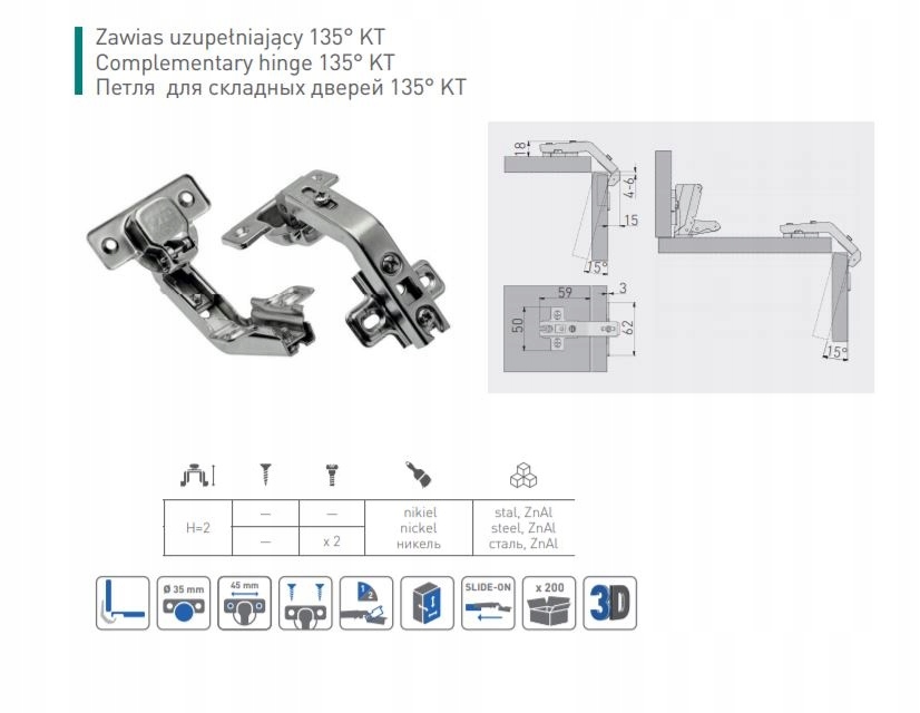 - 2 шт. - Додаткова кутова петля 135°
