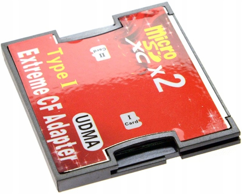 - Адаптер дозволяє використання дешевших карт micro SD/SDHC і micro SDXC у більшості камер і пристроїв, що підтримують стандарт CF
