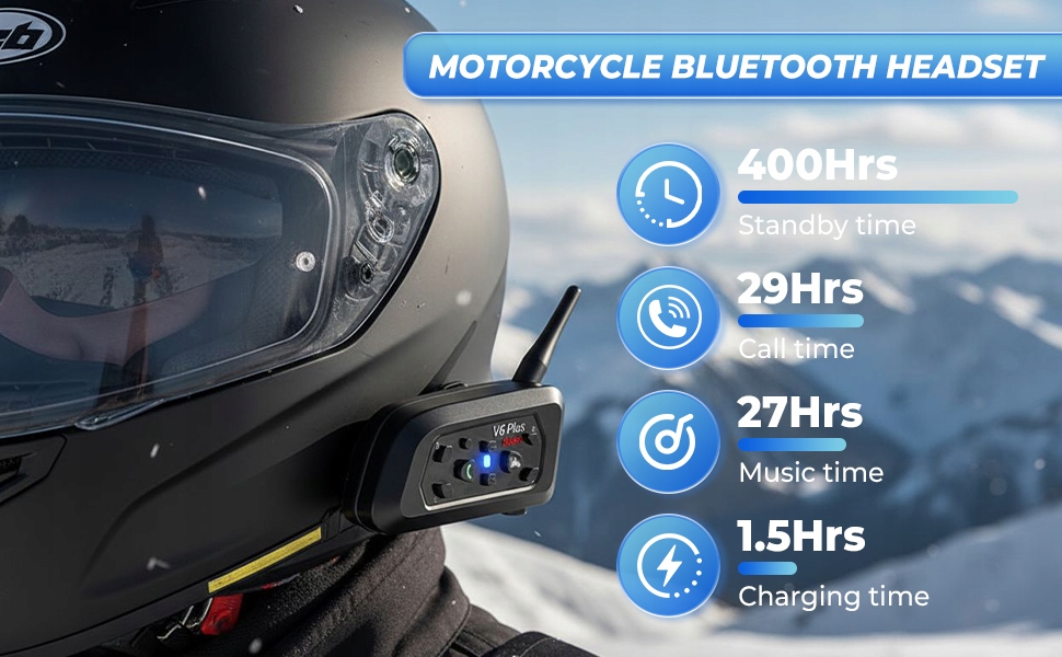 Водонепроникний акумулятор великої ємності: оснащений акумулятором великої ємності 850 мАг, його можна використовувати протягом 10-12 годин і має час роботи в режимі очікування до 400 годин. Водонепроникний за стандартом IP65, V6 Plus можна використовувати в різних ситуаціях, зокрема для їзди на велосипеді, лижах тощо.