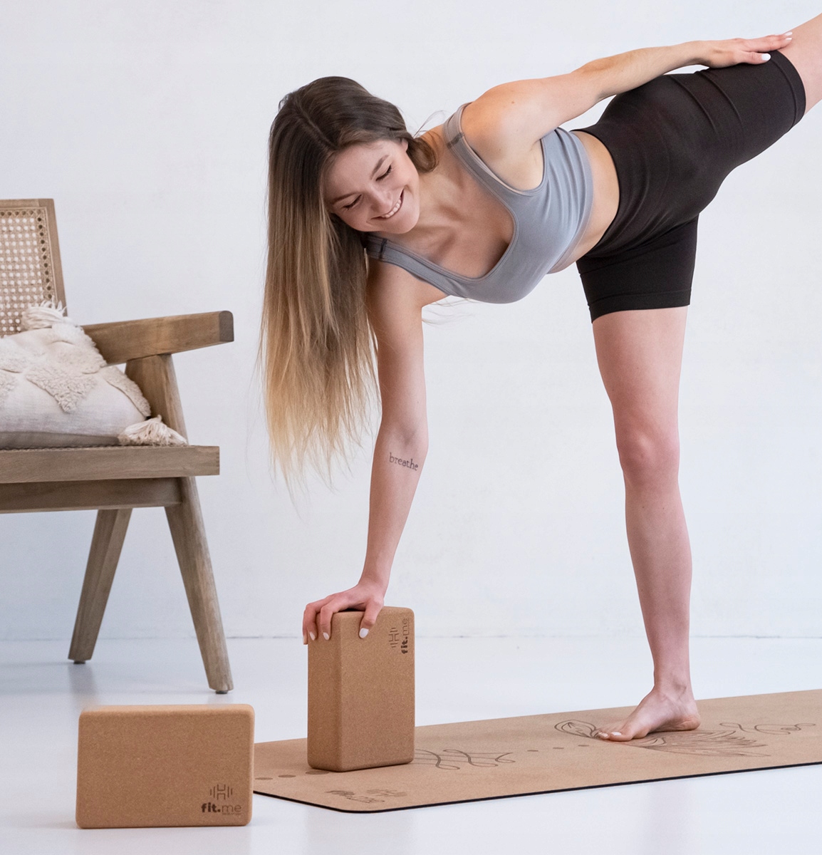Килимок для йоги FIT.ME CORK MAT WITH 2 CUBE