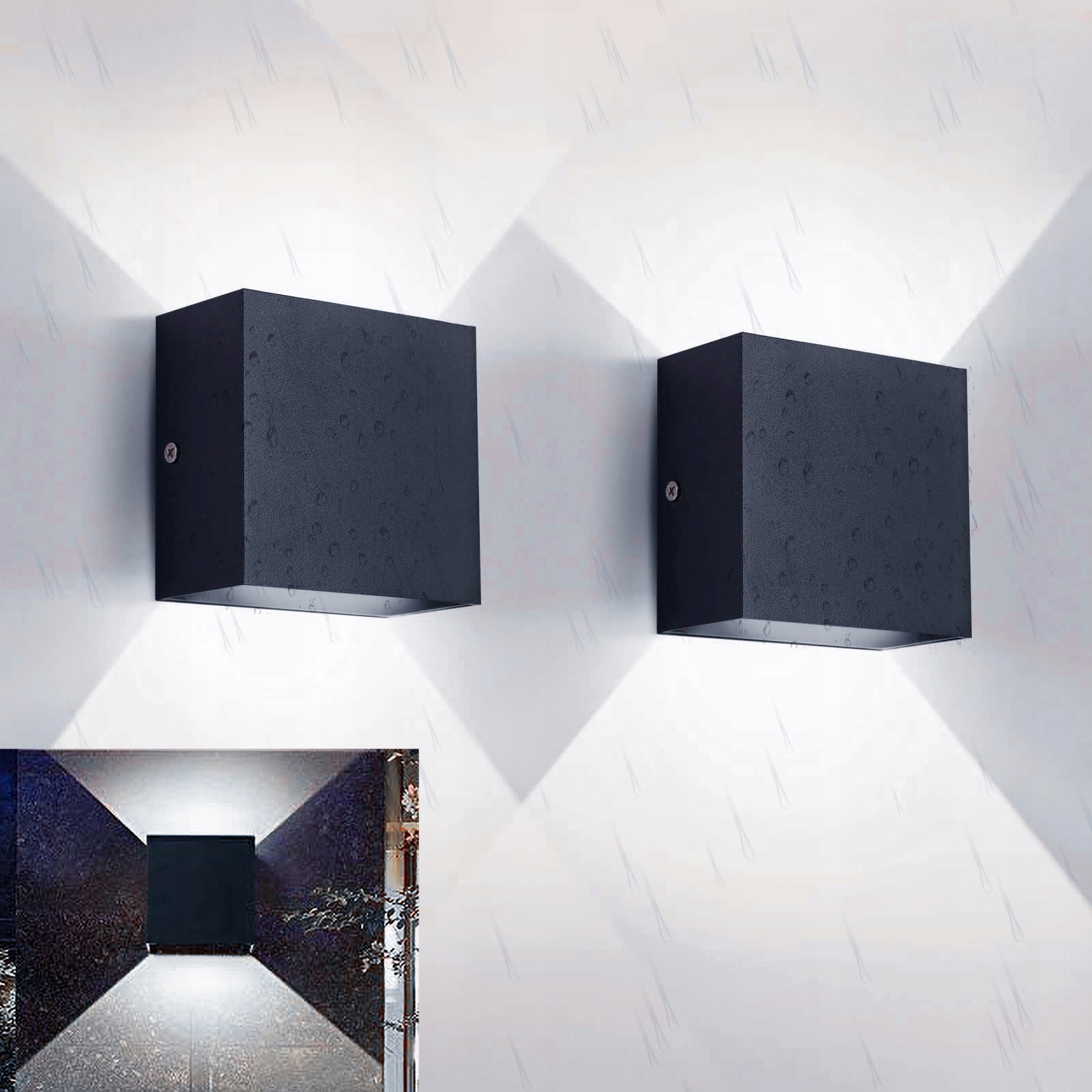 IP65 Водяна стійкість】 підходить для зовнішнього та внутрішнього використання, ця водонепроникна світлодіодна настінна лампа може бути встановлена на вулиці в парку, саду тощо.
