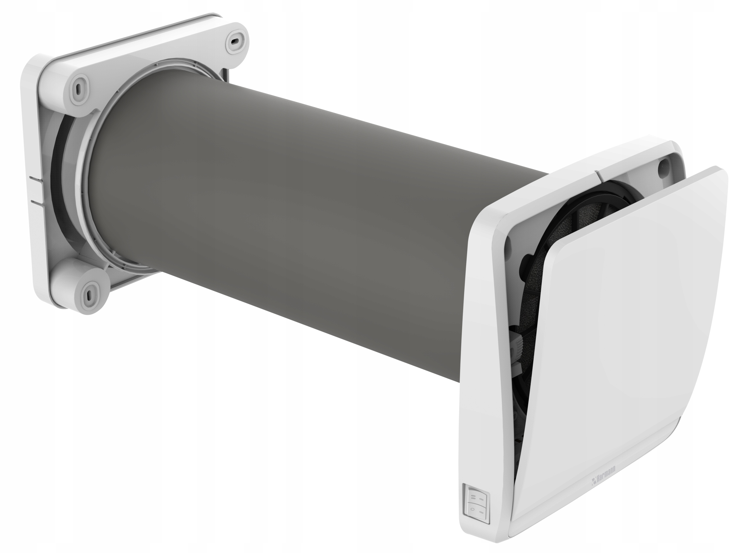 - Розташований реверсивний вентилятор із глушником за теплообмінником, всередині стіни.