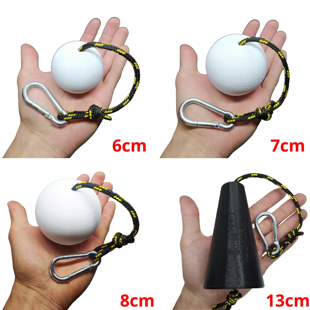 Конічні рукоятки висотою 13 см і слизькою поверхнею стануть викликом для багатьох спортсменів, які практикують смуги перешкод, біг-магеддон, скелелазіння, гімнастика або воїн ніндзя .