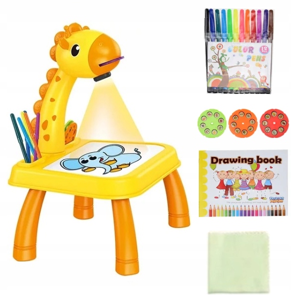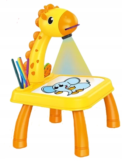 Проектор у формі жирафа зі столиком — чудовий пристрій, призначений для всіх дітей від 3 років як для тих, хто має художній хист, так і для тих, хто просто хоче почати свою пригоду з малювання. Естетично виготовлений проектор дозволяє поєднати розваги з розвитком уяви та творчих здібностей і покращує ручні навички вашої дитини.
