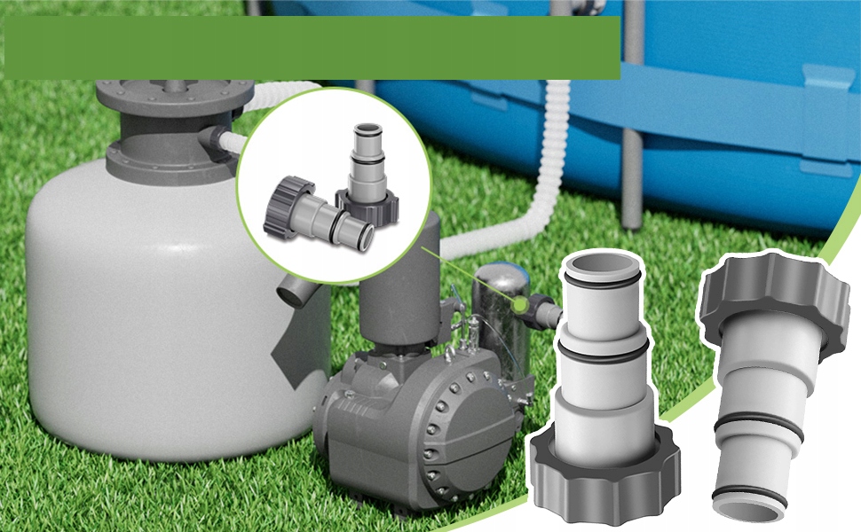 【Ефективний адаптер для з’єднання басейну】 Адаптер для басейну 38–32 для всіх фільтруючих насосів Intex 4000, 2500, 2000 і 1500 GPH, які використовують різьбові змійки.
