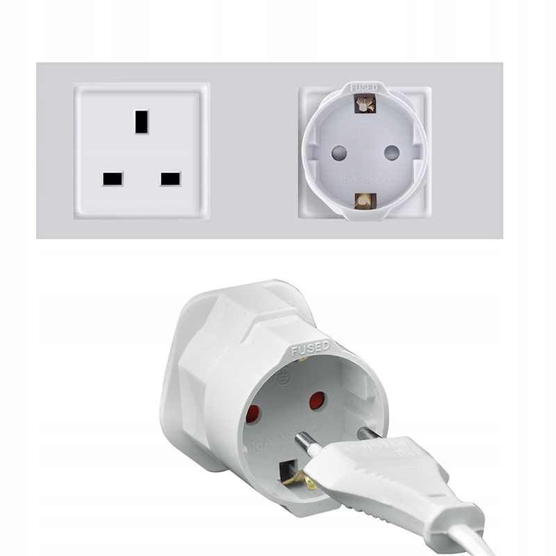 �Компактний і міцний: 2-контактний європейський штекер із Польщі до 3-контактного британського штекера оснащено запобіжником на 16 А до 4000 максимум. Вт.