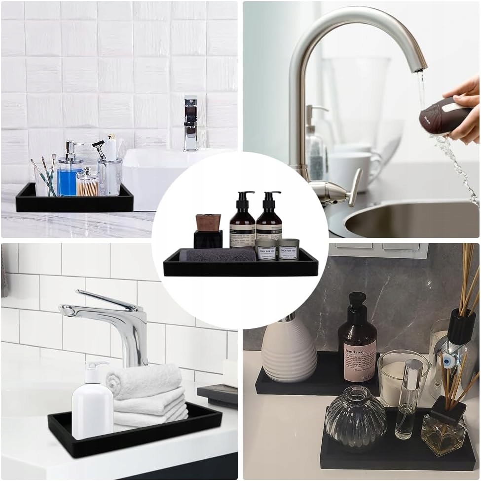- Ідеальний розмір - піднос для ванної має розміри 20 x 10 x 2 см. Чорний лоток вміщає все: від косметики та туалетних приналежностей до рушників та інших необхідних речей для ванної кімнати, зберігаючи все впорядкованим і легкодоступним.