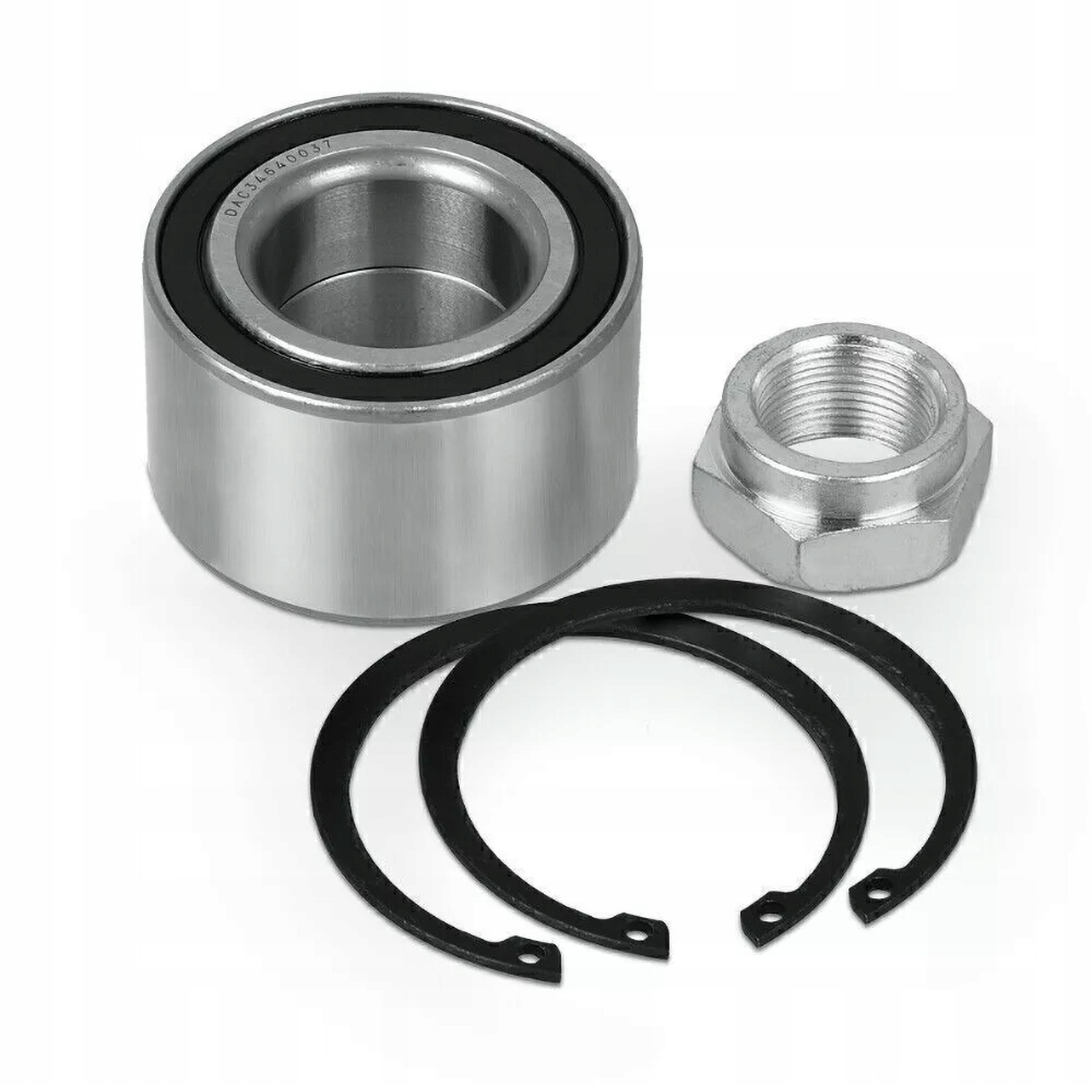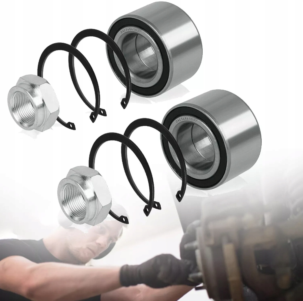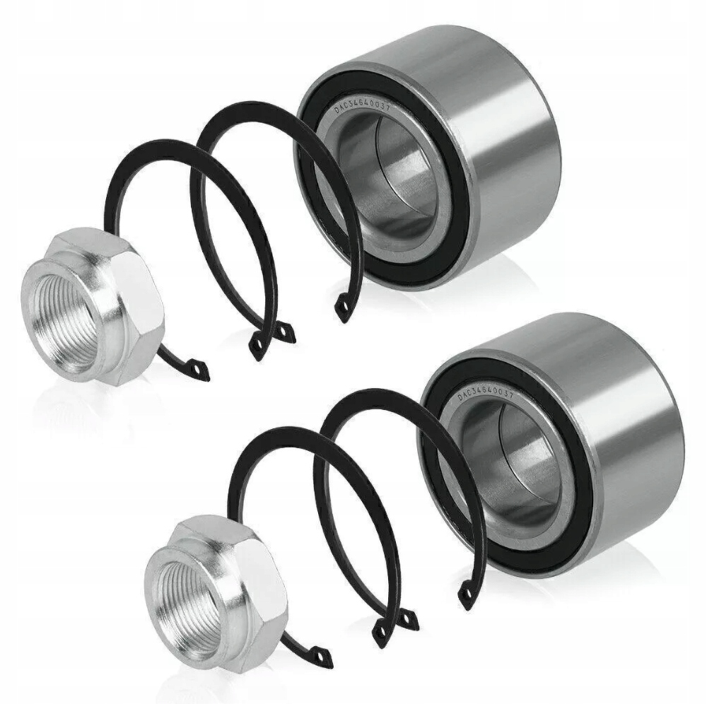 2 комплекти компактних колісних підшипників 34/64 x 37 мм або 3464, включаючи фланцеву гайку та стопорне кільце.