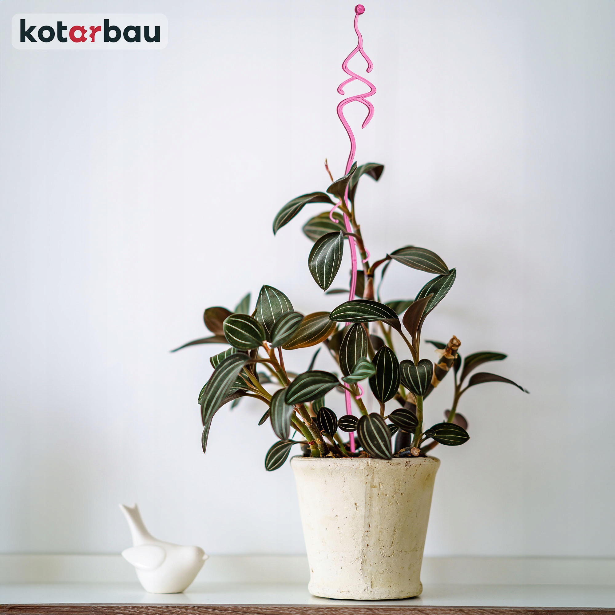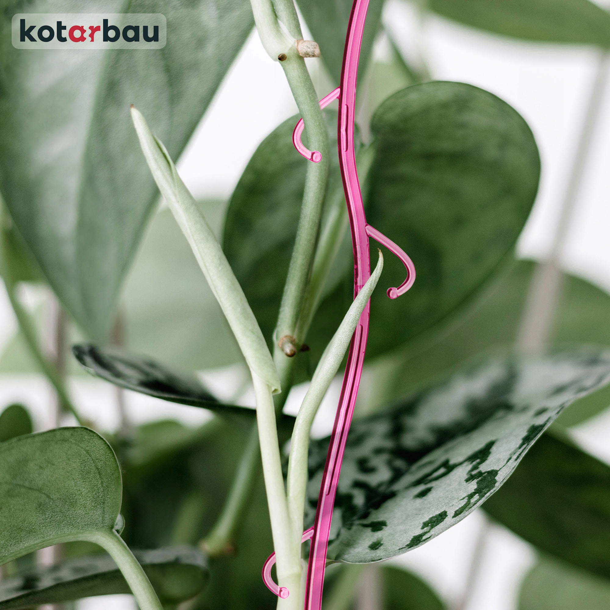 Квіткова опора рожева та прозора, тому її практично непомітно та жодним чином не заважає рослині чи композиції. Він не порушує естетику квітів, а навіть підкреслює її завдяки своїй химерній формі, що імітує рослину.