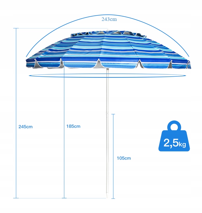 Легкий і портативний дизайн: сумка для транспортування, що входить у комплект, і кріплення для піску роблять парасольку портативною та легкою для транспортування. Він важить лише 2,5 кг і ідеально підходить для подорожей.