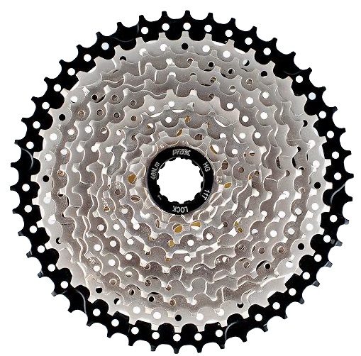 Касета для 10-швидкісних приводів у HG стандартна втулка (Shimano/Sram). Сумісний з усіма 10-швидкісними ланцюгами, доступними на ринку. Найбільші зірочки встановлені на алюмінієвій гайці, завдяки чому касета легка, жорстка і не пошкоджує алюмінієві барабани. Зірочки з високоякісної сталі мають рампи, що забезпечують плавне перемикання під навантаженням. Нікельована поверхня запобігає корозії та зменшує тертя, що робить перемикання передач ще плавнішим і тихішим.