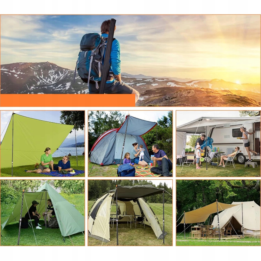 Наші полюси кемпінгу пропонують великий діапазон регулювання від 90 см до 230 см з 4 секціями. Діаметр = 30 мм. Їх можна приймати де завгодно. Незалежно від того, чи дощ чи шторм, наметні стрижні захистить ваш брезент або сонцезахисний крем.